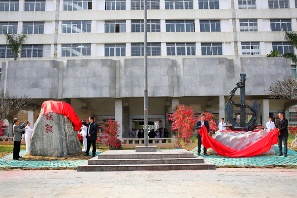 揭幕儀式上,校友代表輪機工程學院原院長蔡振雄教授宣讀了“集美航海教育銘”,于洪亮、蔡振雄,航海學院、輪機工程學院有關領導共同為“誠毅石”和“忠勇錨”揭幕。輪機2011屆校友代表張湘湘在發言中表達了廣大學子對母校培育之恩的感激之情,并祝愿母校越辦越好。