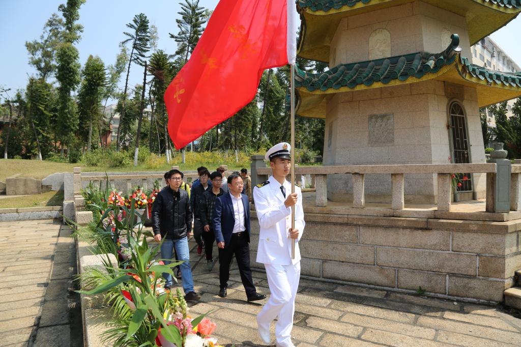 校黨委副書記鄭志謙、陳嘉庚先生后裔和我校師生代表到集美敬賢公園,與廈門市以及集美學村各界人士共同祭掃了陳敬賢先生的墓塔。