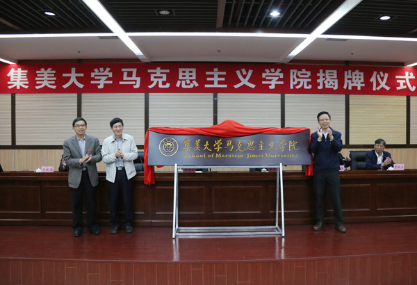 在揭牌儀式上,校長李清彪宣讀了關于馬克思主義學院成立的文件,鄭傳芳、校黨委書記辜芳昭、李清彪共同為馬克思主義學院揭牌。