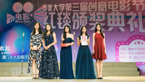 本屆電影節以“時光·夢想”為主題,自3月份啟動以來,共吸引了來自8個學院43個劇組報名參賽,歷經電影拍攝、展映周、電影海報展等環節。經過為期半個月的評審,來自輪機工程學院輪機1413班的《夏天》憑借流暢的敘事手法、精良的后期制作從眾多影片中脫穎而出,斬獲“最佳影片獎”,其女主角尹葉琳獲“最佳女演員”;來自美術學院的影片《天陌未涼》的男主角陳晗宇憑借自然到位的表演獲得“最佳男演員”,誠毅學院《不可饒恕》的導演王中舉獲得“最佳導演獎”,美術學院、水產學院、誠毅學院等學院劇組分別獲得電影節最佳票房、最佳編劇、最佳視覺特效、最佳剪輯、最佳創意、最佳音效、最佳服裝道具等15項大獎。紅毯頒獎典禮上,參加電影節的劇組有序走上紅毯并簽名留念,參加典禮的有關領導嘉賓頒發了本屆電影節各大獎項。