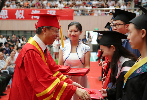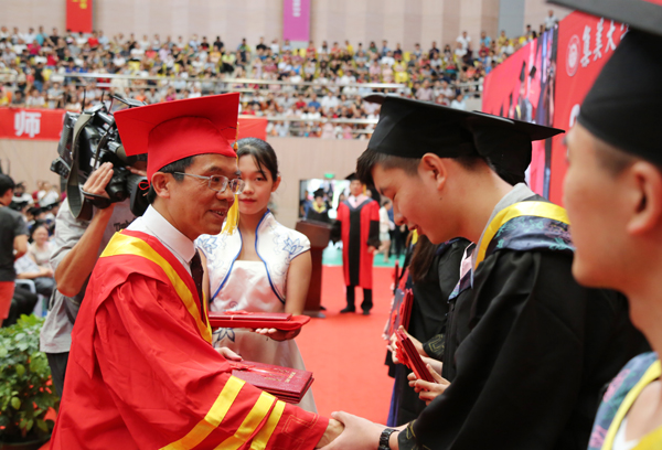 6月22日上午,我校舉行2017屆學生畢業典禮暨學位授予儀式。校領導,學校辦公室、宣傳部、學生處、教務處、研究生處、校團委、選培辦等部門負責人,各學院相關人員及畢業生家長等4600多人參加典禮。畢業典禮由校黨委副書記鄭志謙主持。