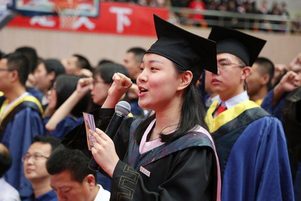 “嘉庚精神,建業立人;心存高遠,行當篤正。”全體畢業生進行了莊嚴的畢業宣誓,表達了“有榮母校,不負此生”的錚錚誓言。
