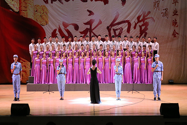晚會上,學(xué)院師生們用精彩紛呈的朗誦、合唱節(jié)目,表達(dá)了對祖國的熱愛之情和對畢業(yè)生的美好祝愿,展現(xiàn)了心永向黨、報效國家的歷史擔(dān)當(dāng)和使命。學(xué)生合唱的《光榮與夢想》等歌曲唱響了青春的夢想、時代的步伐,朗誦的《青春·夢想·未來》等詩篇傾吐了新時代大學(xué)生的理想與胸懷;教職工代表隊朗誦的《相信未來》《這也是一切》述說了對畢業(yè)學(xué)子的期許與盼望,歌曲《送別》寄托了學(xué)院教師對畢業(yè)生的不舍離別之情。最后,晚會在全場師生合唱的《集美學(xué)校校歌》中落下帷幕。
