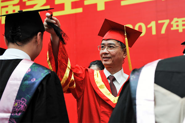 典禮最后,參加典禮的2400多名畢業(yè)生上臺逐一接受學(xué)位授予,學(xué)院領(lǐng)導(dǎo)、各教學(xué)院系主任為畢業(yè)生一一正冠撥穗并合影。