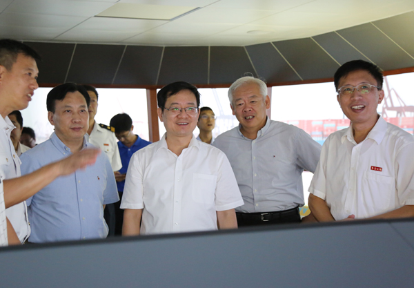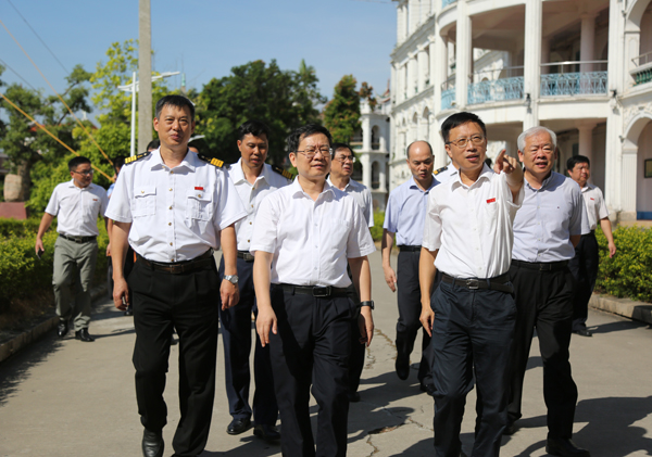 座談會前,高翔等一行在辜芳昭、校黨委副書記鄭志謙的陪同下,到我校航海學院進行實地調研。