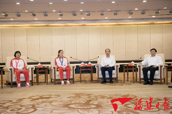 近日,福建省委書記尤權、省長于偉國在福州會見了我校參加第十三屆全國運動會獲獎的體育學院陳莉琳教授、旅游管理2015級學生王慶玲。