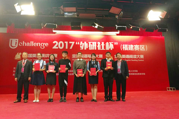 “外研社杯”全國英語演講大賽、寫作大賽和閱讀大賽三大賽事統稱“Uchallenge全國大學生英語挑戰賽”,是由外語教學與研究出版社、教育部高等學校大學外語教學指導委員會、教育部高等學校英語專業教學指導分委員會和中國外語與教育研究中心聯合主辦,北京外研在線教育科技有限公司和中國外語測評中心聯合承辦的公益大賽,已成為全國參賽人數最多、規模最大、水平最高的英語賽事,為全國大學生提供展示外語能力、溝通能力與思辨能力的綜合平臺。在2017年“外研社杯”全國英語大賽(福建賽區復賽)中,來自全省各高校80名選手參加演講大賽復賽、117名選手參加寫作大賽復賽、116名選手參加閱讀大賽復賽。