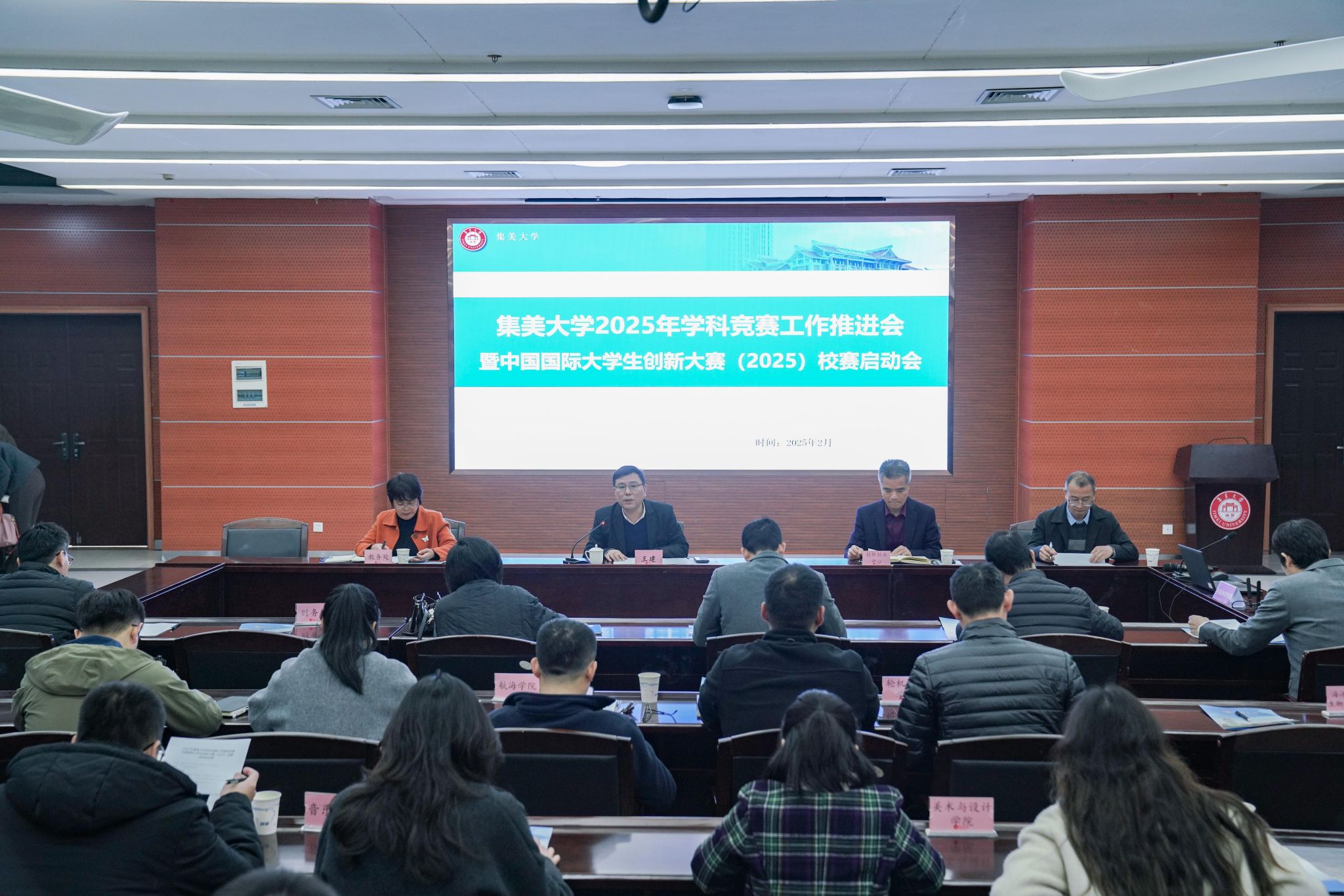 會上對中國國際大學生創新大賽(2025)校賽工作作了部署,并對進一步優化學校學科競賽獎勵的思路和修訂《集美大學大學生創新創業訓練計劃管理辦法》工作作了說明。