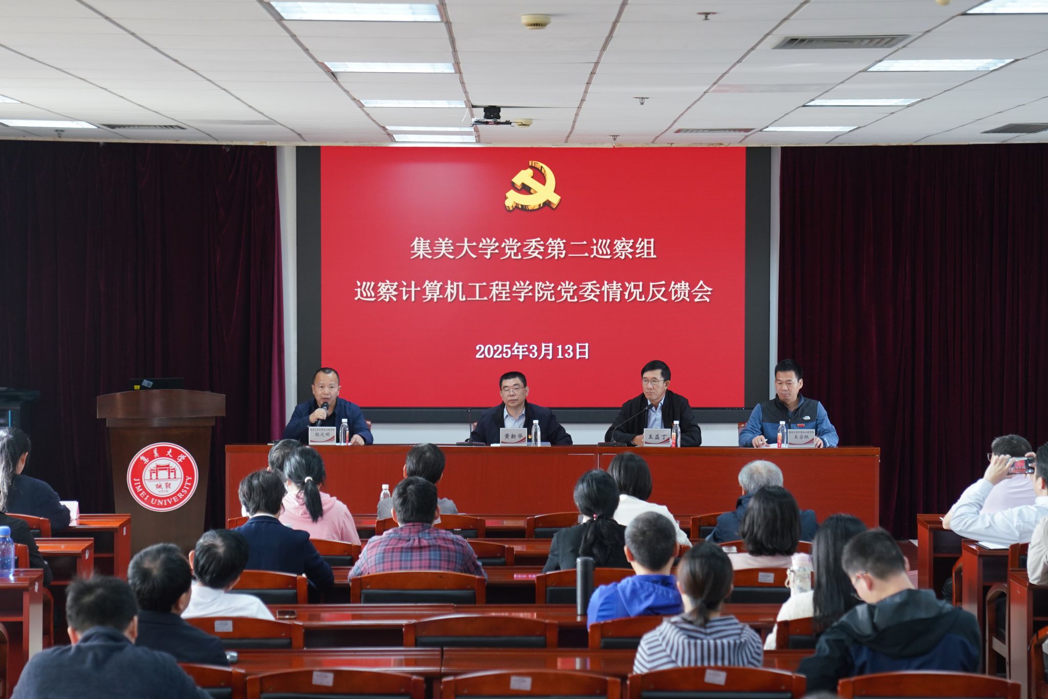 根據(jù)校黨委巡察工作統(tǒng)一部署,3月13日,校黨委兩個巡察組分別向海洋文化與法律學院黨委、馬克思主義學院黨委、計算機工程學院黨委和理學院黨委反饋巡察情況。校黨委書記、巡察工作領(lǐng)導小組組長沈燦煌,校黨委副書記洪文建,校黨委常委、副校長黃新華,校黨委常委、組織部部長、巡察工作領(lǐng)導小組成員莊惠龍參加反饋會。