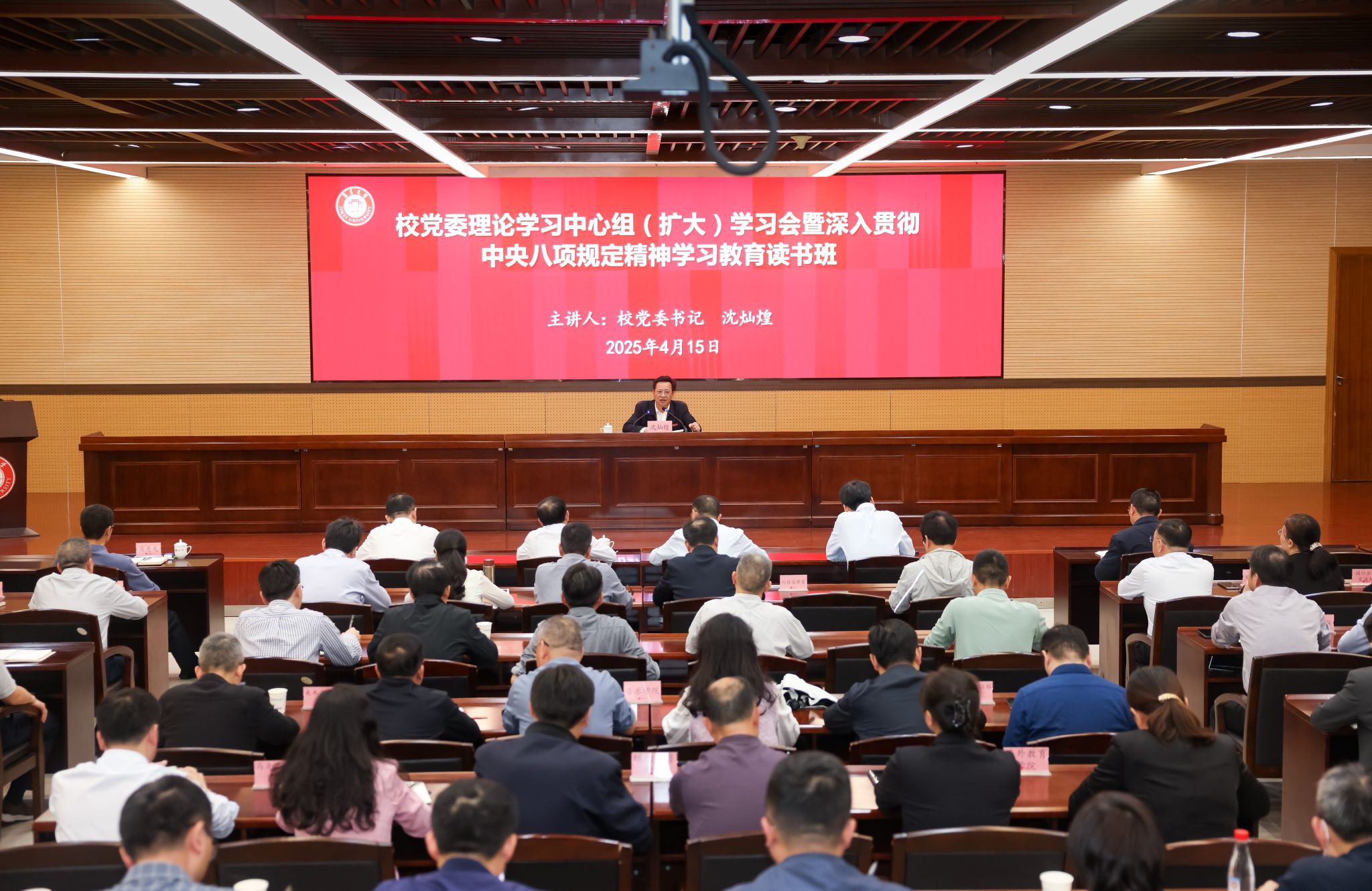 4月15日下午,我校召開校黨委理論學(xué)習(xí)中心組(擴(kuò)大)學(xué)習(xí)會(huì)暨深入貫徹中央八項(xiàng)規(guī)定精神學(xué)習(xí)教育讀書班。校黨委理論學(xué)習(xí)中心組成員,機(jī)關(guān)部處、教輔機(jī)構(gòu)及各學(xué)院副處級(jí)及以上干部參會(huì)。