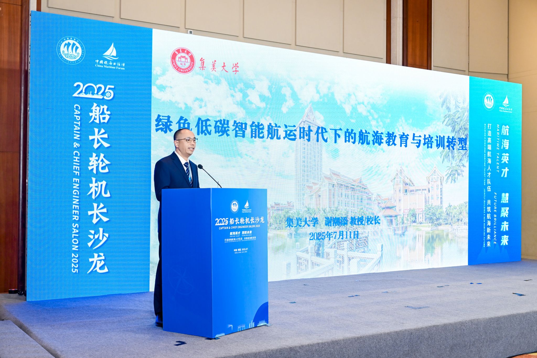 謝潮添先后出席主論壇、航運新質生產力發展研討會、船長輪機長沙龍等活動,并應邀在船長輪機長沙龍上作題為《綠色低碳智能航運時代下的航海教育與培訓轉型》的主題報告。他分析了綠色低碳智能航運時代背景及對航海人才的要求,介紹了我校航海教育與培訓的轉型實踐,并就“政企校研”協同共育綠色智能航海人才提出建議。