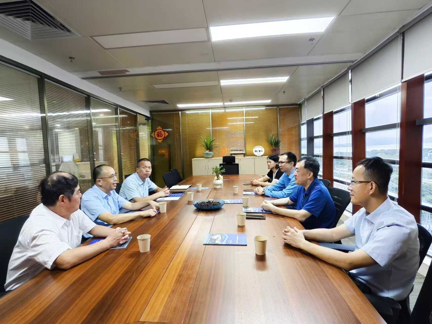在華南中遠(yuǎn)海運(yùn)集裝箱運(yùn)輸有限公司,公司副董事長、黨委副書記黃新群,紀(jì)委書記楊真龍,副總經(jīng)理林斌與謝潮添一行座談。雙方圍繞智能航運(yùn)、綠色低碳智能船舶研制、高素質(zhì)船員培養(yǎng)、畢業(yè)生招聘等方面開展交流。