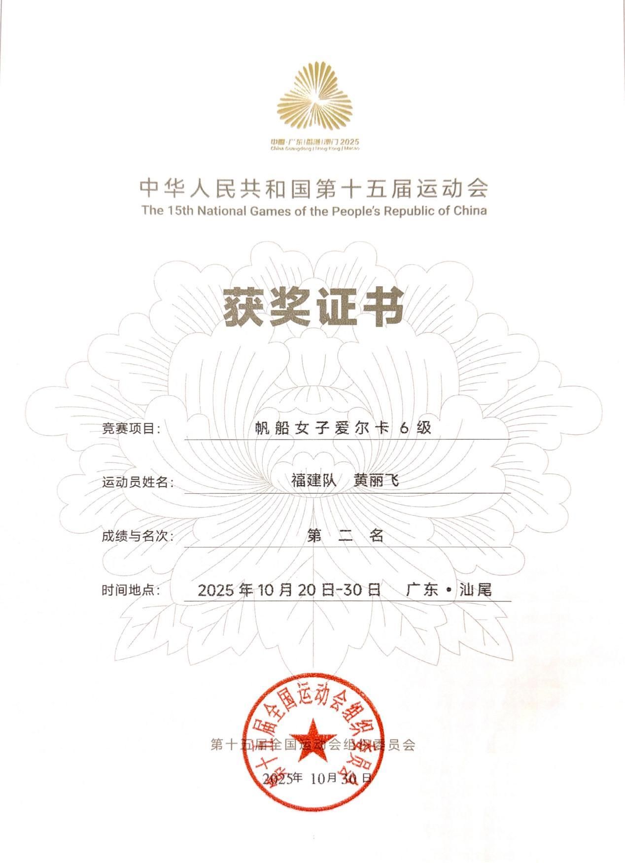 據悉,這枚銀牌是福建省在全運會帆船女子愛爾卡6級項目上獲得的首枚獎牌,實現了歷史性突破。