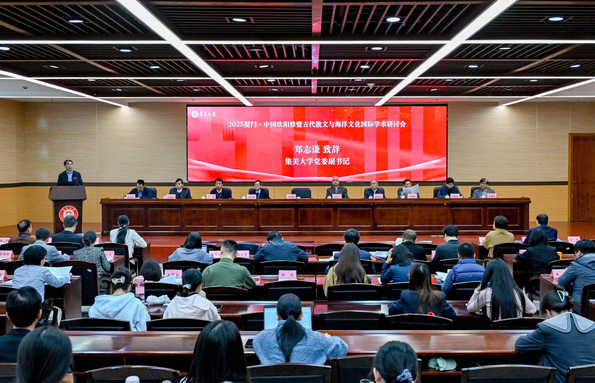 11月21日至23日,“2025廈門·中國歐陽修暨古代散文與海洋文化國際學術研討會”在我校順利召開。本次研討會由中國歐陽修研究會、中國古代散文學會(籌)與我校海洋文化與法律學院聯合主辦,吸引了來自中國、日本、韓國、馬來西亞等國家和地區的60余位專家學者齊聚一堂。校黨委副書記鄭志謙出席開幕式并致辭。