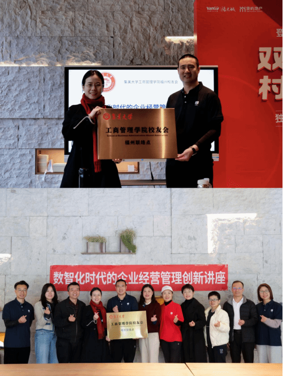 1月31日上午,工商管理學院校友會福州聯絡點授牌儀式舉行。院黨委書記陳娟、院長湯韻、院黨委副書記董欣勝出席儀式,周宏仁、翁陳蘭、王琳、王莉明、譚小紅、林榕、黃晨等校友及企業家代表共同參加。