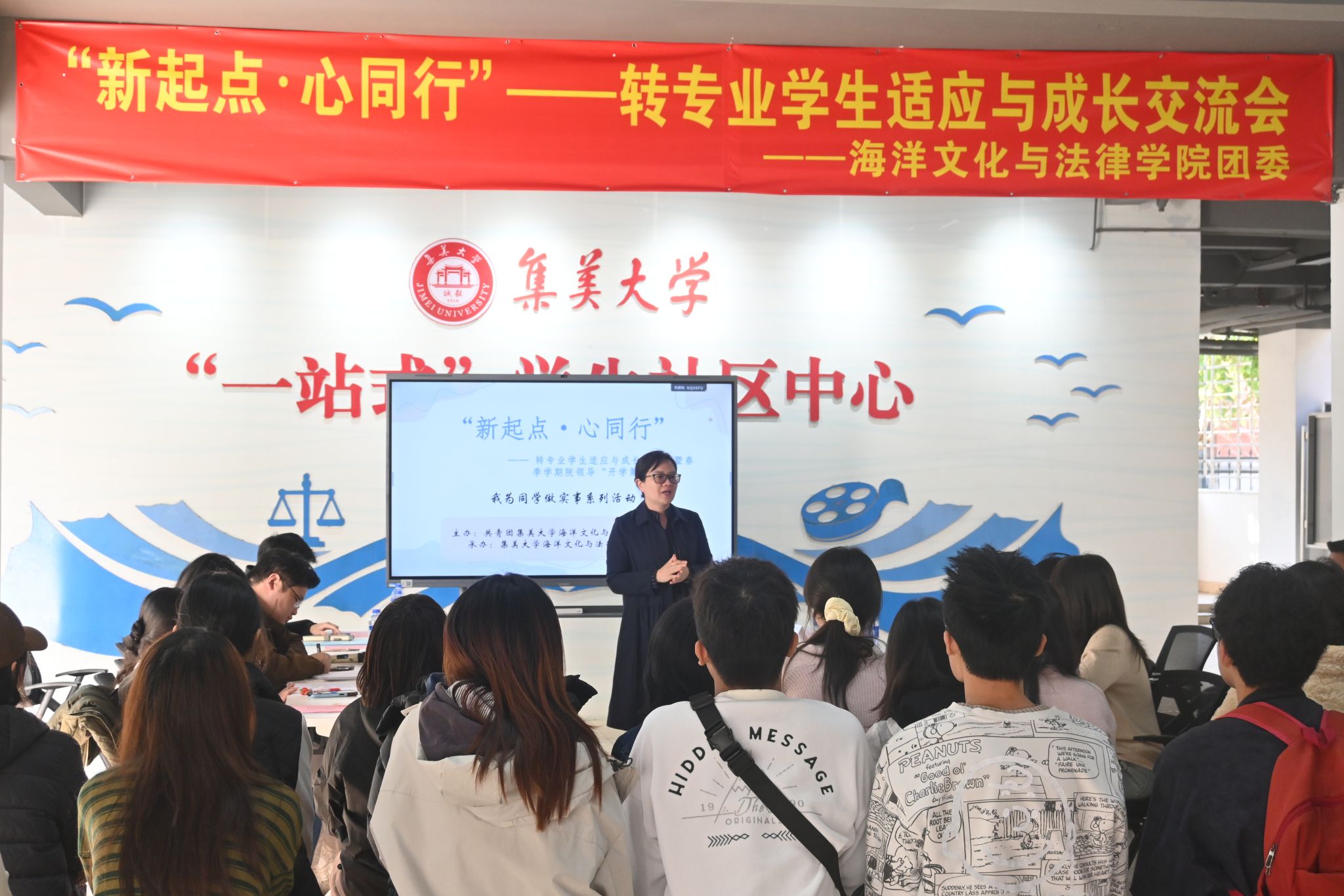為深入推進“我為同學做實事”系列活動,幫助轉專業學生更好適應新環境、明確發展方向,3月11日下午,海洋文化與法律學院舉辦“新起點·心同行”轉專業學生適應與成長座談會暨師生“同心·同行”面對面交流活動。院黨委副書記沈哲瓊、院團委負責人、輔導員代表以及2024級、2025級轉專業學生共同參與。