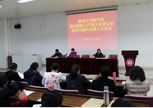 2016年12月30日下午,圖書館四屆三次“雙代會”在嘉庚圖書館一樓召開,55名圖書館第四屆“雙代會”代表出席了會議。