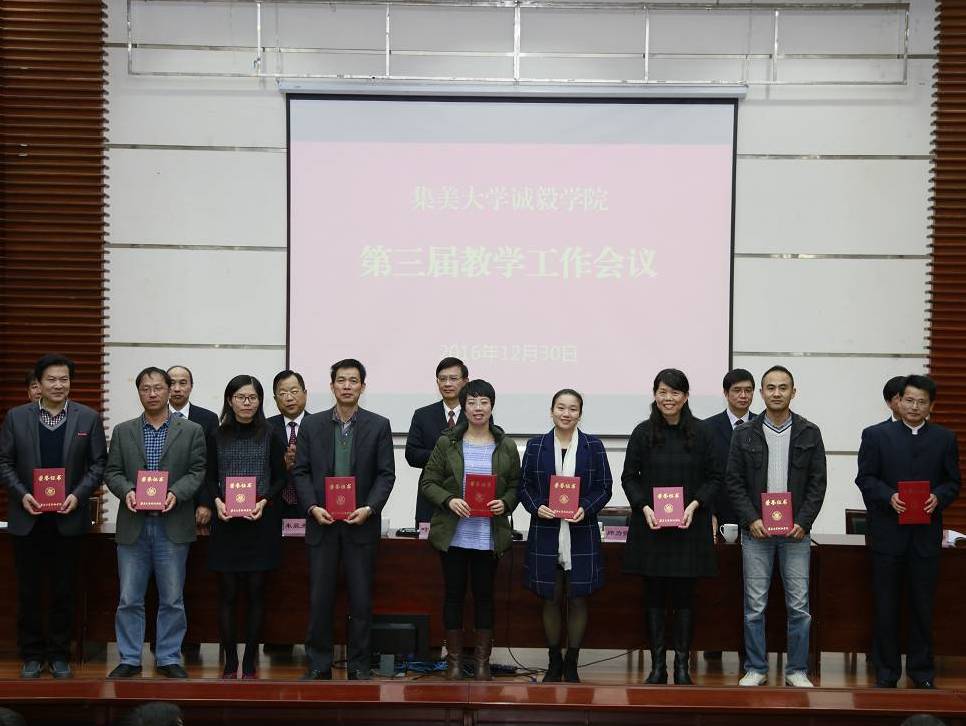 2016年12月30日,誠毅學院在景祺樓104學術報告廳召開第三屆教學工作會議,回顧總結兩年來學院教學工作的成效,分析當前存在的問題與困難,安排和部署未來兩年教學工作的重點任務,同時表彰了兩年來學院教學工作先進項目和教師。葉光煌等學院領導出席會議。