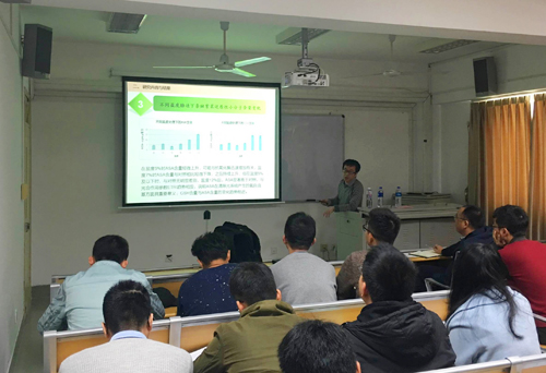 3月1日,中科院海洋所藻類生理與發育調控實驗室牛建峰副研究員應邀來水產學院進行學術交流,并作了題為“條斑紫菜應對高鹽脅迫機制初步分析”的學術報告。學院壇紫菜改良與育種等研究團隊師生近60人聆聽了報告。