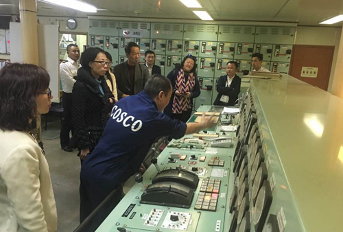學(xué)院領(lǐng)導(dǎo)一行考察了“中遠(yuǎn)之星”郵輪的集裝箱層、駕駛臺(tái)、旅客層及船上娛樂設(shè)施。雙方就校企合作進(jìn)行交流,并就旅游管理專業(yè)的認(rèn)知實(shí)習(xí)、課程實(shí)習(xí)、畢業(yè)實(shí)習(xí)等達(dá)成了深度合作意向。
