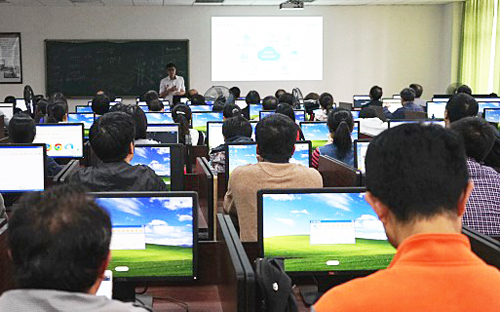 45下午,理學院在三樓機房舉辦“課堂派”教學培訓會,計算機工程學院王智謹博士應邀主講。學院全體專任教師參加了培訓會。