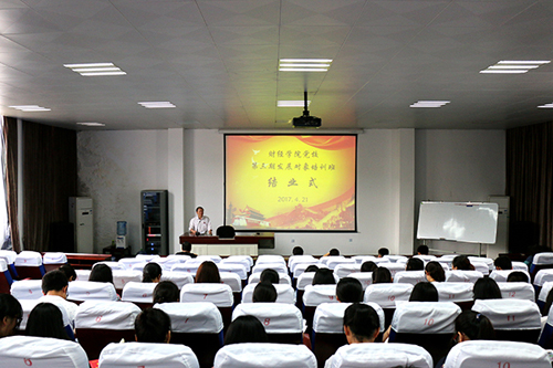 4月21日下午,財經學院舉行黨校第三期發展對象培訓班結業式。學院黨委書記周邵生、黨委副書記陳志鴻,黨委組織員、全體輔導員及培訓學員參加了結業式。