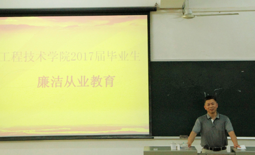 5月22日下午,工程技術(shù)學(xué)院開展畢業(yè)生廉潔入職教育,拉開了學(xué)院畢業(yè)生廉潔教育的序幕。學(xué)院黨政領(lǐng)導(dǎo)、政工干部及全體畢業(yè)生出席了活動。
