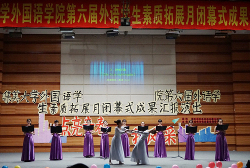 5月26日晚,外國語學院在月明樓舉辦第六屆外語學生素質拓展月閉幕式成果匯報演出。學院黨委副書記陳雅珍,學院團委有關老師、各年級輔導員、班主任觀看了演出。