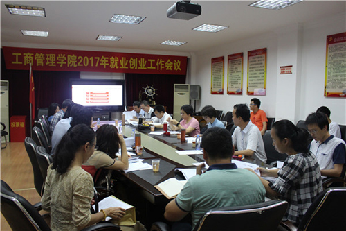 5月31日,工商管理學院召開2017年就業創業工作會議。學院領導、各部門負責人、各教研室主任、各教工黨支部書記、畢業班班主任和全體輔導員參加了會議。