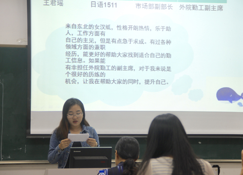 會(huì)上,學(xué)院學(xué)生會(huì)、自律會(huì)、社團(tuán)聯(lián)合會(huì)、勤工服務(wù)中心分別對(duì)過(guò)去一年來(lái)的工作進(jìn)行了總結(jié),并對(duì)各組織未來(lái)的發(fā)展進(jìn)行展望;學(xué)院學(xué)生會(huì)、自律會(huì)、社團(tuán)聯(lián)合會(huì)、勤工服務(wù)中心競(jìng)選人員分別上臺(tái)發(fā)表競(jìng)選演講,闡述了對(duì)學(xué)生組織工作的認(rèn)識(shí)和對(duì)今后工作的規(guī)劃。最后,班委、學(xué)生干部投票。