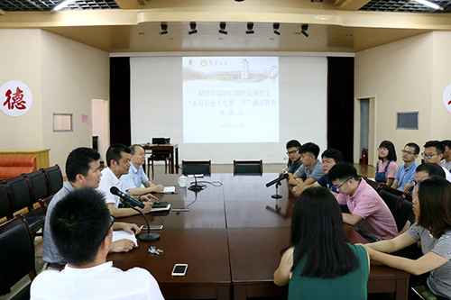 6月9日下午,財經學院召開2017屆畢業研究生“走好社會人生第一步”廉潔教育座談會。學院領導、研究生導師和2017屆全體畢業研究生參加了座談會。