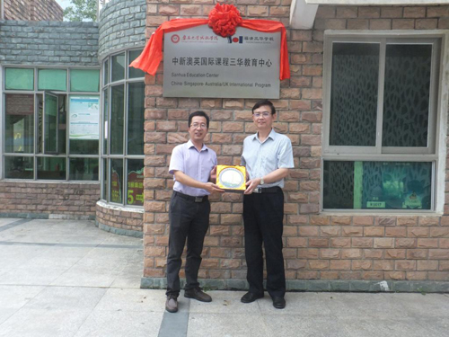 學(xué)院院長葉光煌和福清三華學(xué)校校長陳輝共同為中新澳英國際課程三華教育中心揭牌,福清三華學(xué)校副校長葉友山、鄭本慶,學(xué)院對外部主任兼國際學(xué)院院長張毅、福建省中新澳英項目總監(jiān)劉輝農(nóng)等參加了揭牌儀式。