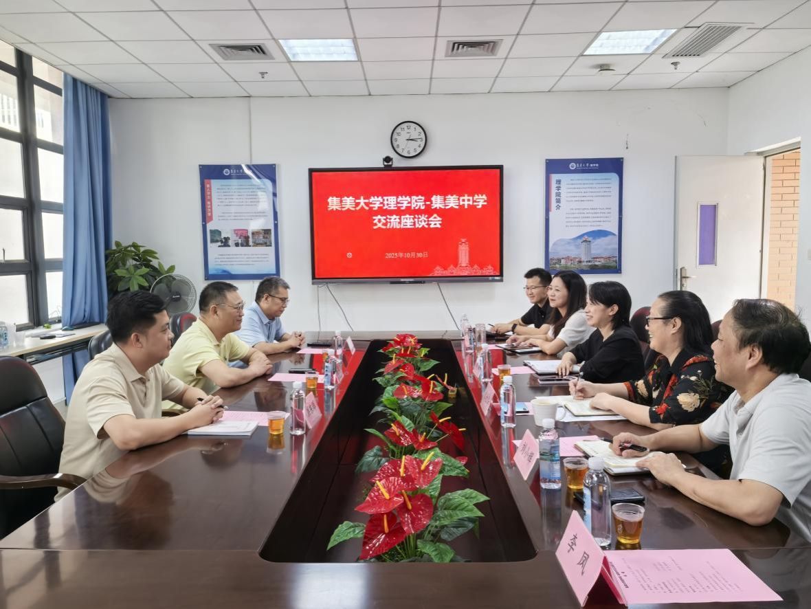 近日,集美中學(xué)校長(zhǎng)黃雄帶領(lǐng)校辦主任、教務(wù)處負(fù)責(zé)人一行到訪(fǎng)理學(xué)院。學(xué)院領(lǐng)導(dǎo)及相關(guān)教師參加座談,雙方圍繞人才培養(yǎng)、大中小數(shù)學(xué)一體化建設(shè)及數(shù)學(xué)拔尖人才培養(yǎng)等議題展開(kāi)深入交流。