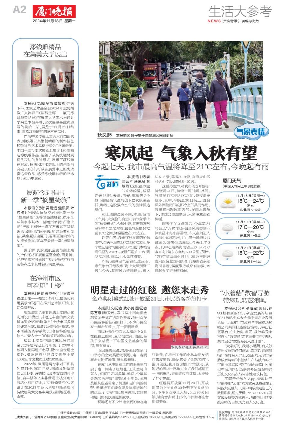 本報訊(文/圖 吳笛 黃顏希)昨天下午,國家藝術基金會2024年度傳播推廣交流項目《漆線生輝——廈門漆線雕精品展》在集美大學美術與設計學院美術館開幕,這次展覽是此次巡展的最后一站,展覽于11月21日結束,喜歡漆線雕的朋友不要錯過。