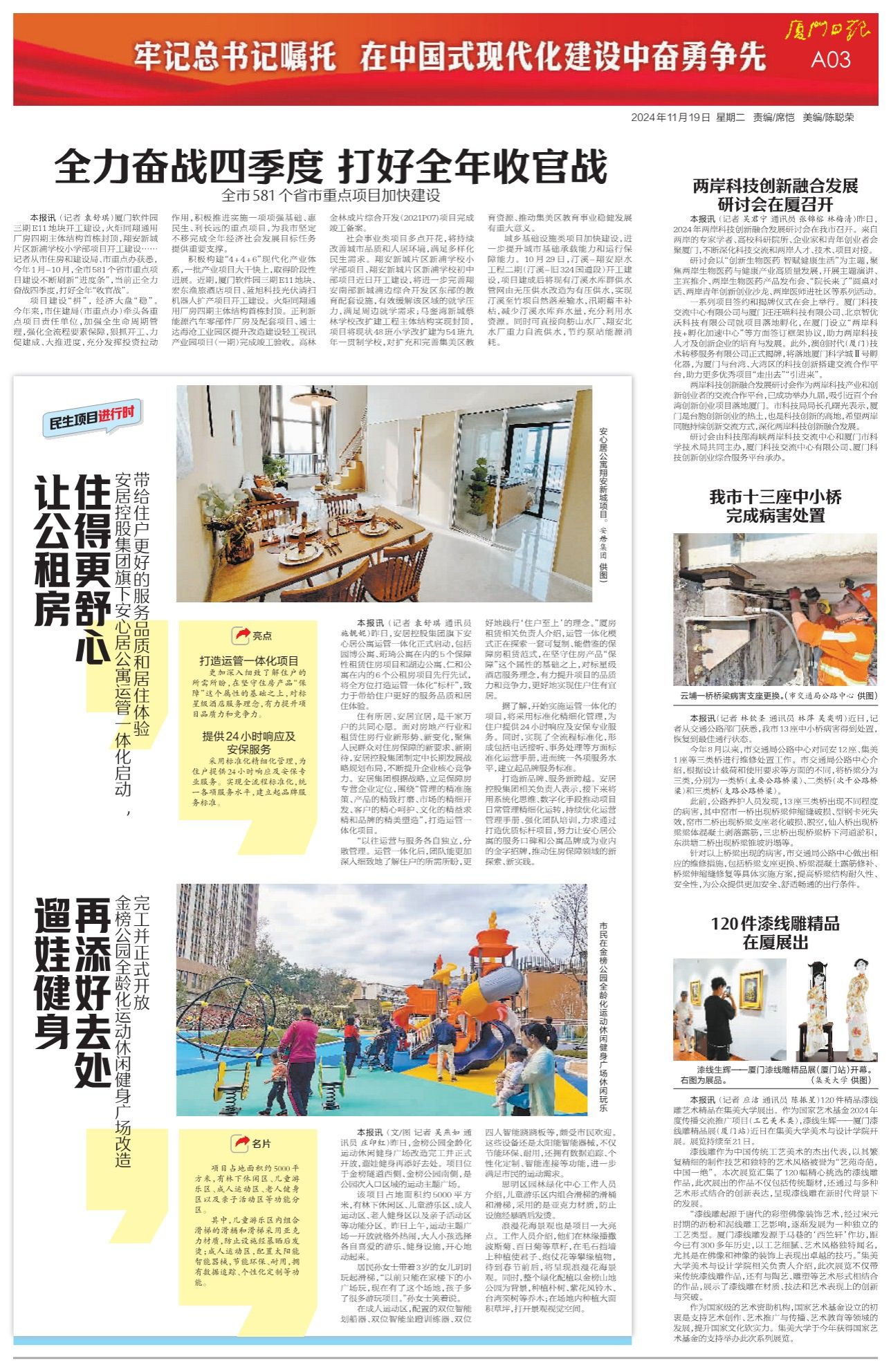 本報訊 (記者 應(yīng)潔 通訊員 陳振星)120件精品漆線雕藝術(shù)精品在集美大學(xué)展出。作為國家藝術(shù)基金2024年度傳播交流推廣項目(工藝美術(shù)類),漆線生輝——廈門漆線雕精品展(廈門站)近日在集美大學(xué)美術(shù)與設(shè)計學(xué)院開展。展覽持續(xù)至21日。