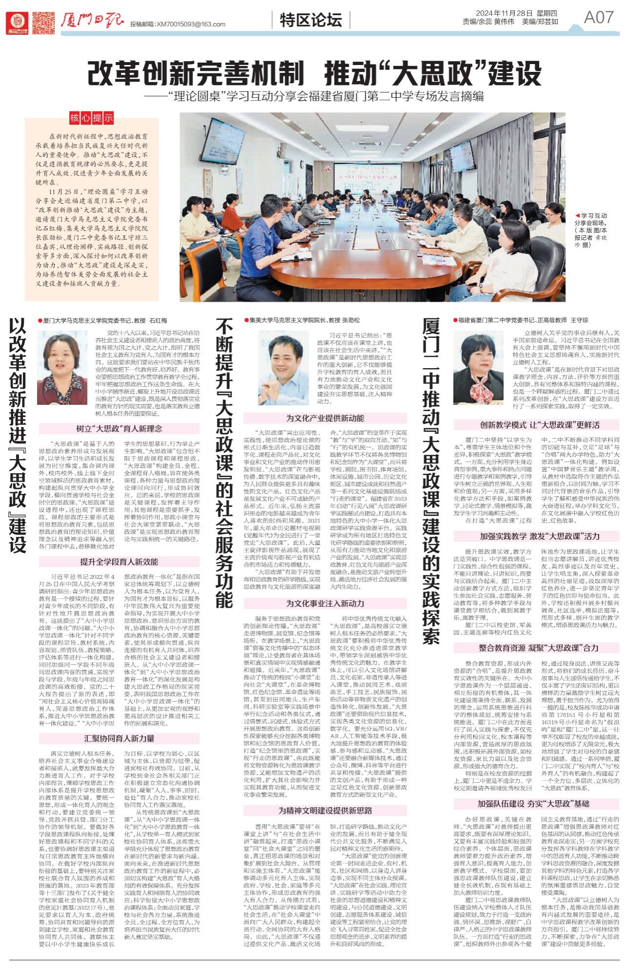 2024年11月28日 集美大學(xué)馬克思主義學(xué)院院長(zhǎng)、教授 張勁松