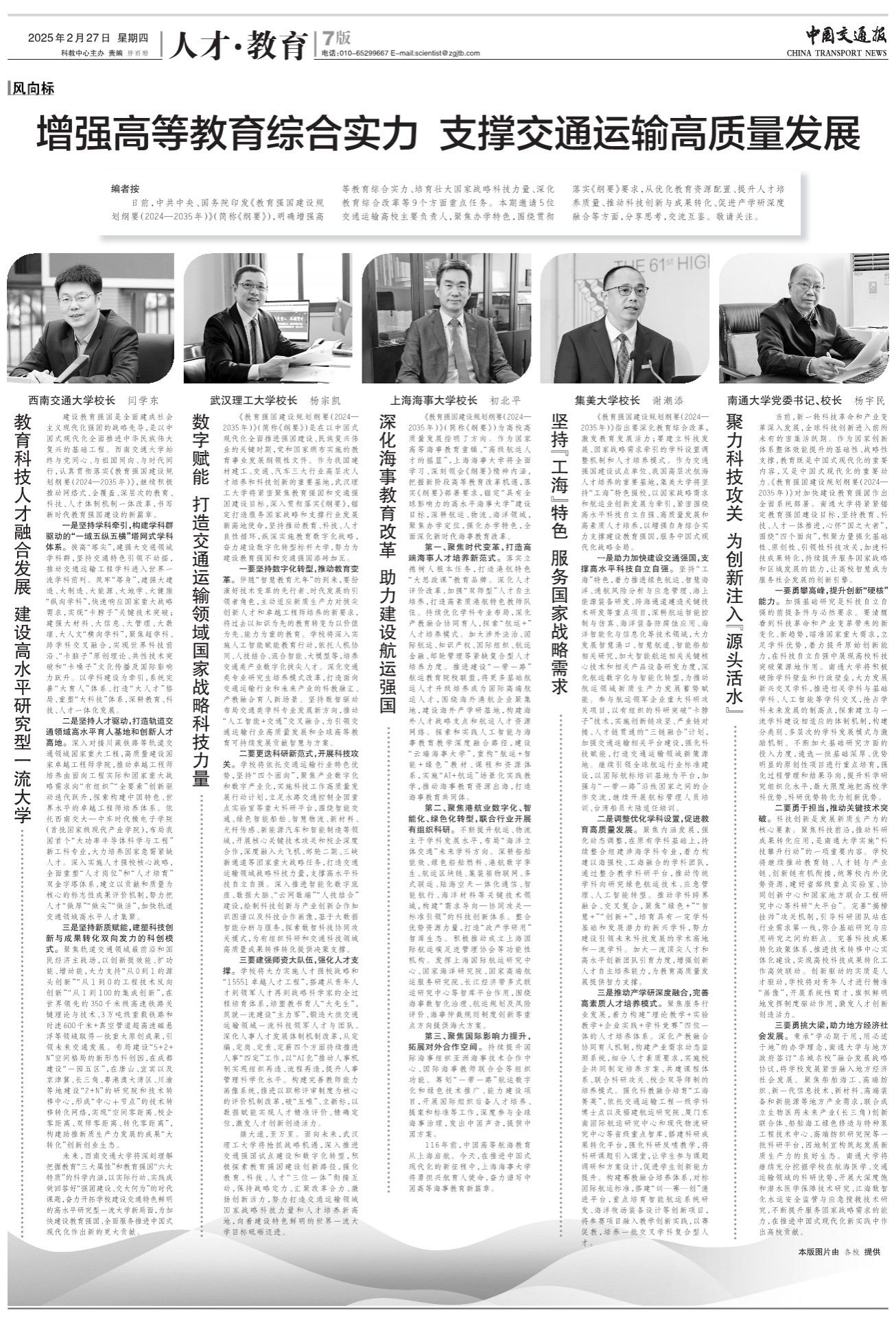 《教育強(qiáng)國建設(shè)規(guī)劃綱要(2024—2035年)》指出要深化教育綜合改革,激發(fā)教育發(fā)展活力;要建立科技發(fā)展、國家戰(zhàn)略需求牽引的學(xué)科設(shè)置調(diào)整機(jī)制和人才培養(yǎng)模式。作為交通強(qiáng)國建設(shè)試點單位、我國高層次航海人才培養(yǎng)的重要基地,集美大學(xué)將堅持“工?!碧厣珡?qiáng)校,以國家戰(zhàn)略需求和航運(yùn)業(yè)創(chuàng)新發(fā)展為牽引,緊密圍繞高水平科技自立自強(qiáng)、高質(zhì)量發(fā)展和高素質(zhì)人才培養(yǎng),以增強(qiáng)自身綜合實力支撐建設(shè)教育強(qiáng)國,服務(wù)中國式現(xiàn)代化戰(zhàn)略全局。